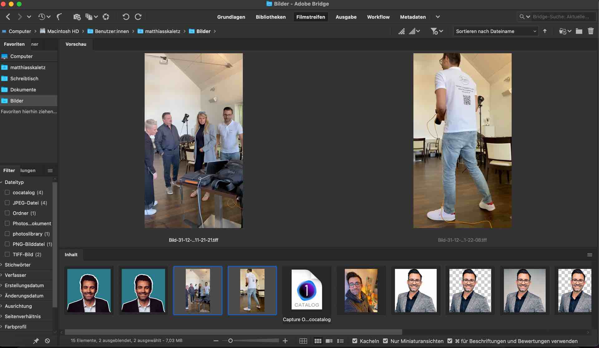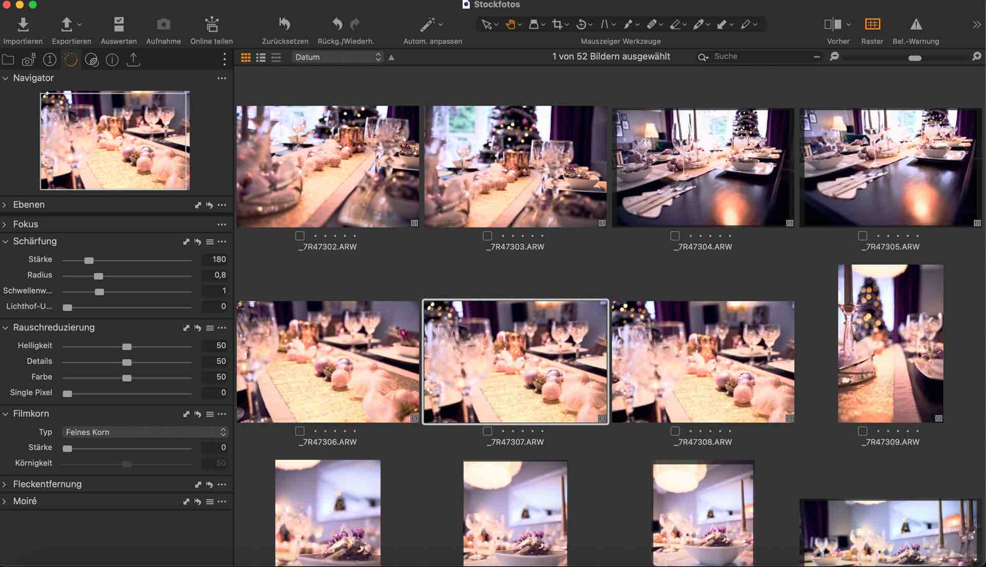 Auswahl der besten Bilder: Der Fotograf wählt die besten Aufnahmen aus, die für die weitere Bearbeitung in Betracht gezogen werden.